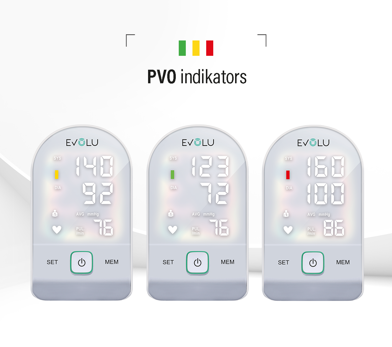Kontrolējiet savu labsajūtu, regulāri mērot asinsspiedienu ar kādu no mūsu klīniski apstiprinātajiem EVOLU INTELLIGENT asinsspiediena mērītājiem. Regulāra asinsspiediena kontrole palīdzēs Jums savlaicīgi rīkoties un meklēt medicīnisko palīdzību, pirms rodas tādas problēmas kā sirds slimība vai insults. EVOLU INTELLIGENT spiediena mērītājs nodrošina precīzus rezultātus un ir ērti lietojams.