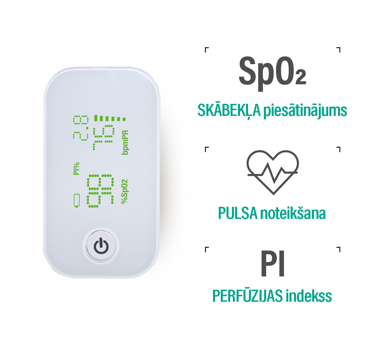 - Skābekļa piesātinājuma līmeņa noteikšana SpO2;